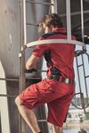 Ergonomische Passform durch Elasthananteil, elastischer Bund mit Gürtelschlaufen, verdeckte Verarbeitung an Knöpfen und Reissverschlüssen, Schubtaschen, diverse Werkzeugtaschen, Zollstocktasche, Handytasche und Stiftefächer, reissfeste 3-fach Naht, elastische leichte Canvas-Qualität, 60° waschbar, trocknergeeignet bei niedriger Temperatur, Grösse 62 Art.Nr. 02.872X